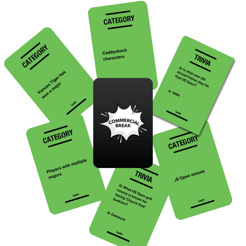 When a Commercial Break card is drawn, shift gears and test your golf knowledge