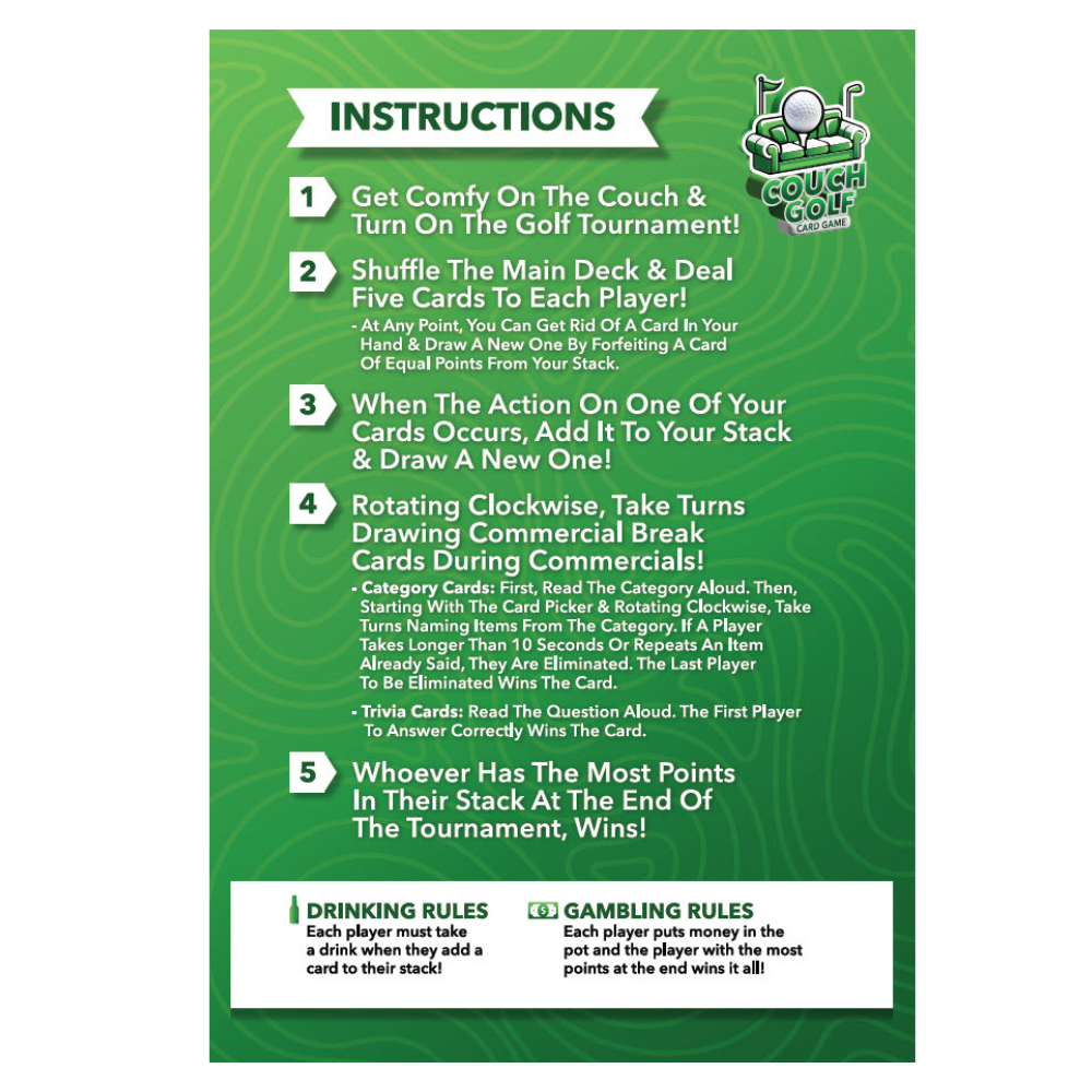 viewers, Couch Golf adds a layer of excitement to every swing and sip.